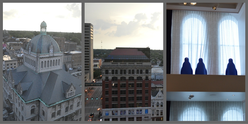 We loved the view from our room on the 11th floor. We could see the work on the old courthouse, the people gathered at Thursday Night Live, the big 5/3 ‘’Blue” building and more. Our room also featured art work on the wall.