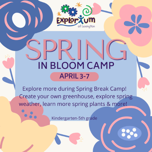 04/03/2023 - 04/07/2023 8:30 am - 5:00 pm Spring in Bloom Camp Lexington Children’s Museum, Lexington KY