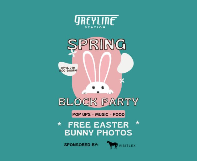 🆓 04/07/2023 5:00 pm - 9:00 pm Spring Block Party + Easter Bunny Photos Greyline Station, Lexington KY