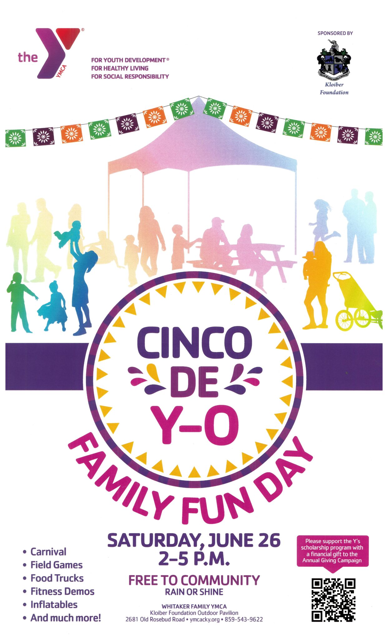 Join us for a FREE family themed fun day on Saturday, June 26 from 2-5 p.m. (rain or shine) at the Whitaker Family YMCA, located at 2681 Old Rosebud Road in Hamburg. Carnival, field games, food trucks, fitness demos, inflatables and much more. Event will be held at the Kloiber Foundation Outdoor Pavilion.