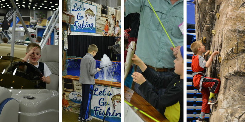 My boys and I had a great time the last few years! There are always lots of great things for kids to do at the show – past events have included free pony rides, fishing, inflatables, and more! There are fun fishing demonstrations by the pros, lots of cool things to pretend to ride, and loads of RVs to step inside! Each year there are new things to see and do. Check out a few of our pics from over the years!