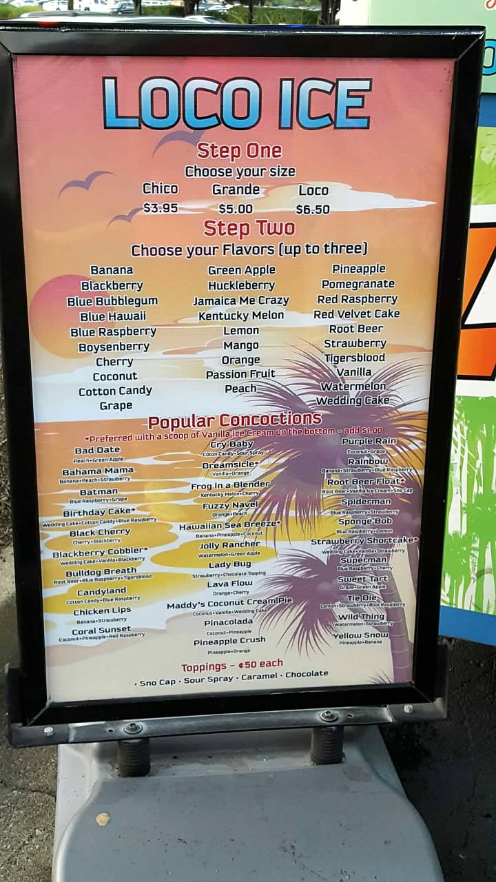 Loco Ice is a local shaved ice spot with two Lexington locations (Hamburg, 1979 Pavillion Way beside Best Buy and in Stonewall Shopping Center on Clays Mill). They are locally owned and are always a popular spot when they open seasonally for the summer.