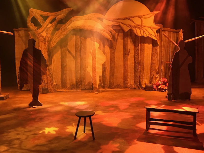 The show is based on the famous tale by Washington Irving. Set back in the late 1700’s there are three actors that do a magnificent job of weaving us through the story of Ichabod Crane, a new schoolmaster in the town of Sleepy Hollow. The set design is full of warm, fall colors and eerie fog wafting through the room. It sets the mood perfectly as we travel back in time to meet our easily frightened friend, Ichabod, played by Mark Andrew Tucker.