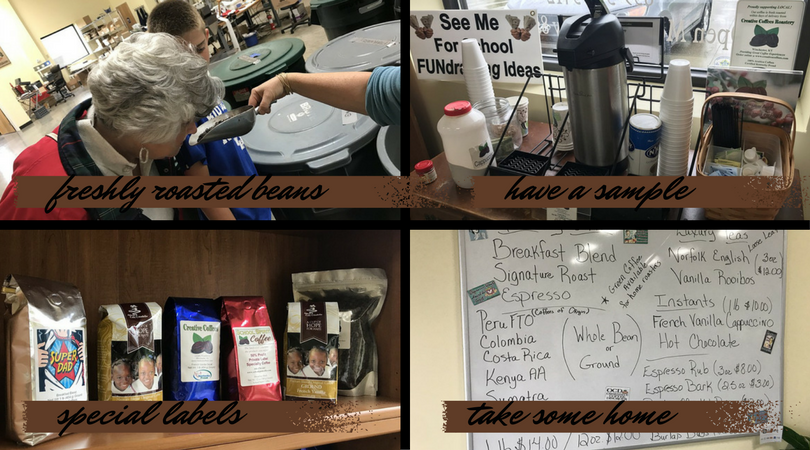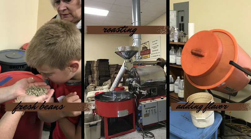 Creative Coffees Roastery offers coffee for local fundraisers and special orders. They source their beans from all over the world and then roast the beans there on site, add flavors, and package it. When you go for a tour you’ll see and smell the beans before they are roasted, you can watch the beans roasting if you catch it them during roasting time, can see them in the mixer being flavored and watch them package them.