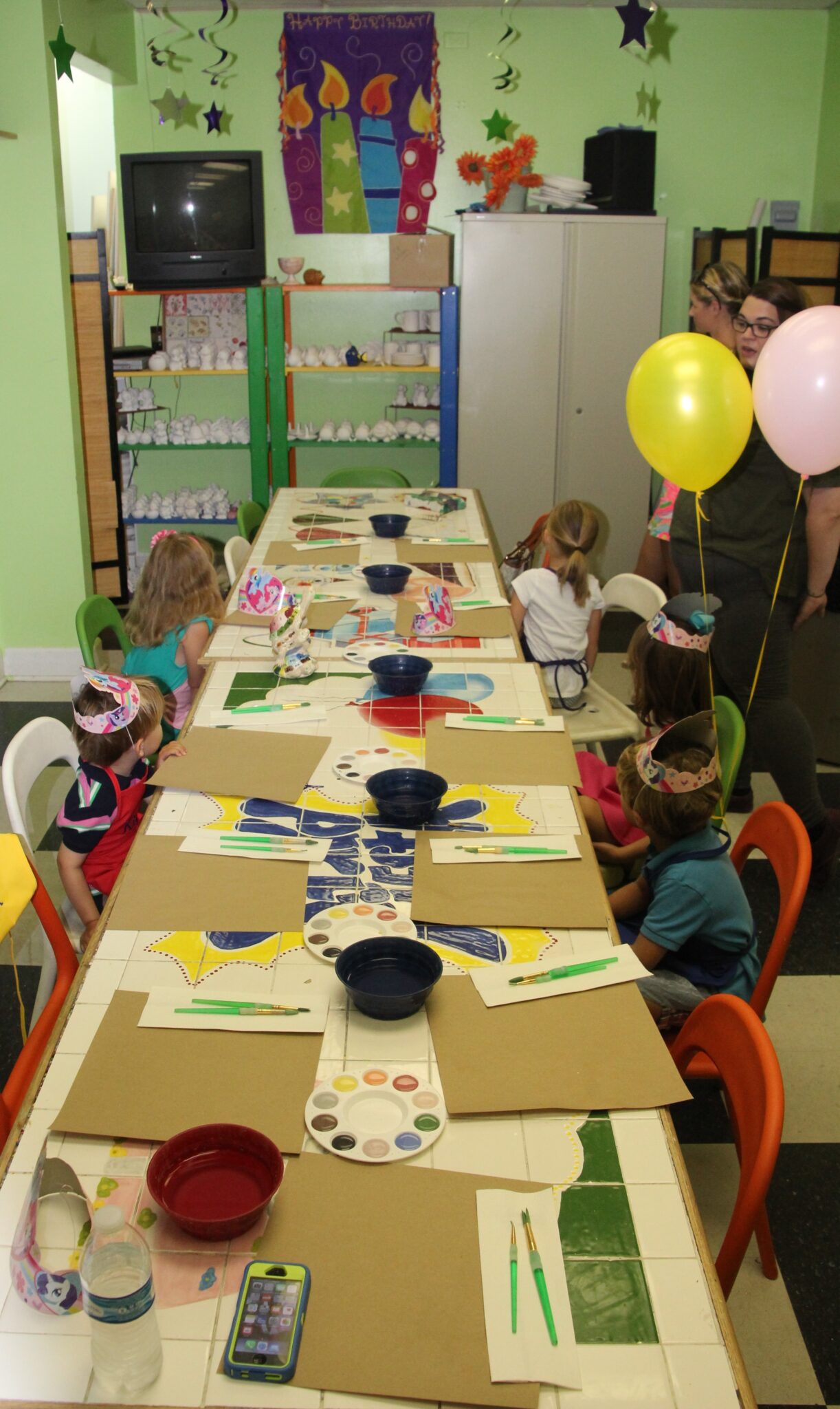 I can’t say enough about the staff members that helped us with the party. They were helpful and attentive, but they didn’t hover. When all the guests had arrived, the staff person assigned to our party came in to give directions, help the children choose their pottery item, and make sure we had everything we needed. She checked on us frequently, refilled paint, and made sure each child’s name was on their pottery as they finished. Everything ran so smoothly and was very organized.