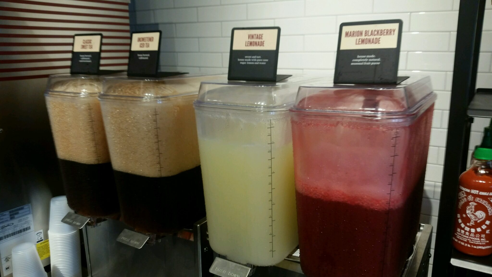 The drink choices were Coke products but they had fresh brewed tea, wine, beer, and some awesome lemonade! The blackberry lemonade is all natural and made with a fruit puree. It was very yummy!!