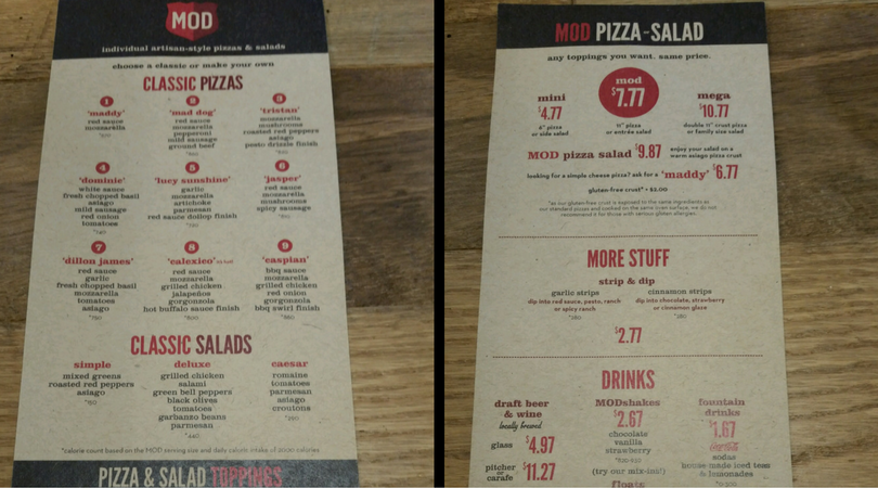 MOD isn’t just pizza! They have BIG salads that also looked delicious. You can choose one from the menu or create your own with romaine or mixed greens just like you do for the pizzas. They have great choices for dressings and just like the pizza it’s just $7.77!