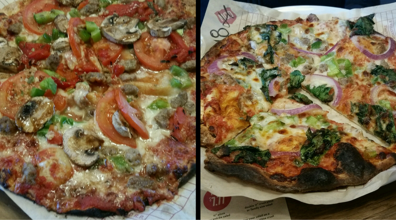 The menu features their Classic creations with special topping combos but they also have a make your own option. You can add as many or as few toppings as you’d like for one price. Just $7.77 gets you an 11 inch pizza cooked right when you order in just minutes. They also have a 6 inch option for $4.77 and a double 11 inch for $10.77. Their simple 11 inch cheese, The Maddy, is just $6.77.
