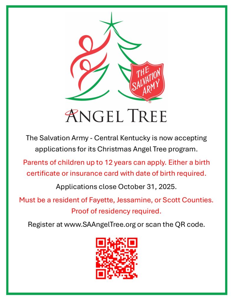 Lexington Angel Tree sign ups are open through October 31, 2025. The program is open for kids age 12 and under.