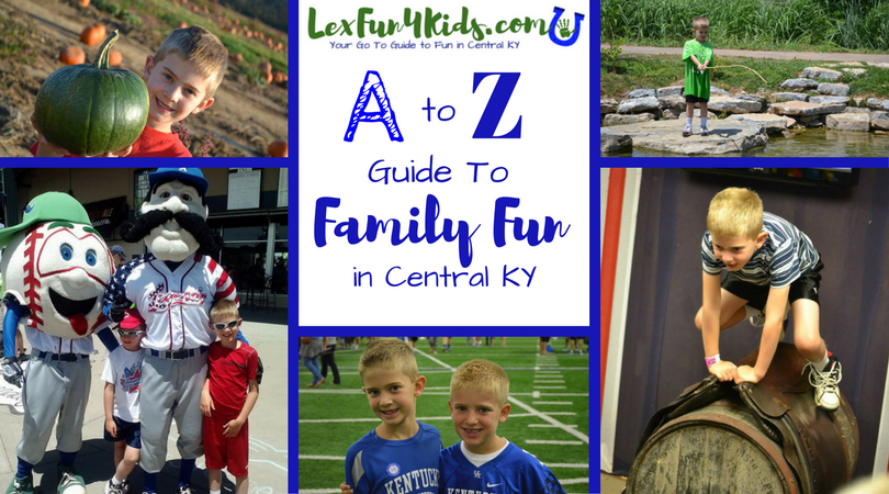 Enjoy Family Fun in Lexington and Central KY with the Lex Fun 4 Kids A to Z Guide! New to Lexington? First time parent? Visiting from out of town? We have all the fun summed up for you in this cool list! Enjoy!